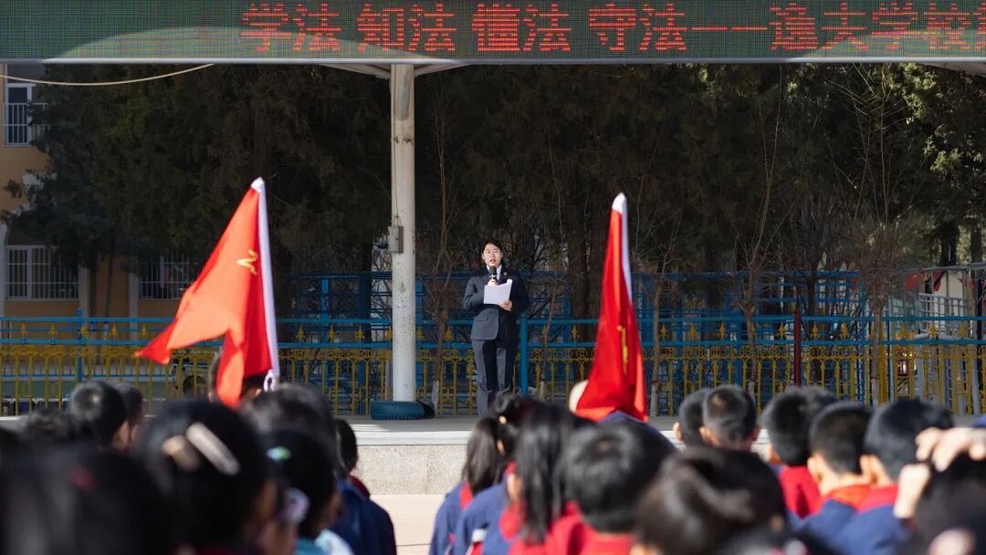 庄严的国旗下,全校师生认真聆听、用心领会。此次法治宣讲活动将法律知识融入日常教育,有利于提升学生法治观念、规则意识和自我保护能力,让法治精神在校园落地生根。下一步,临河区人民检察院将持续深化“法治进校园”活动,不断创新普法形式,以司法力量护航成长,切实为未成年人健康成长筑牢坚实法律屏障。