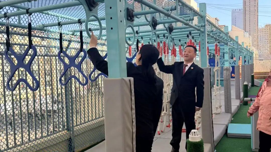 法治课堂结束后,法治副校长与园方共同对管理条例完善进行座谈。最后,双方对幼儿园户外游乐设施、活动场地、安全防护等进行全面检查,对可能存在的安全隐患提出具体完善建议,以检察力量筑牢校园安全防线。