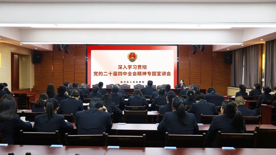 11月24日,临河区人民检察院召开学习贯彻党的二十届四中全会精神宣讲会,邀请巴彦淖尔市宣讲团成员、巴彦淖尔市委讲师团副团长吕倩同志作专题宣讲。临河区人民检察院副检察长周荣主持会议,全体检察人员参与学习。