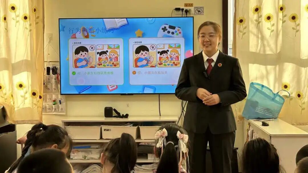 课堂上,孩子们专注的眼神、认真的表情令人动容,当检察官讲到“不碰危险物品”时,孩子们纷纷摇头并做出“禁止”手势;听到“分享玩具”时,小脸上露出认同的微笑互动式普法,让抽象的规则变得可感可知,也让法治的种子在幼儿心中生根发芽,逐步成长为护佑未成年人成长成才的参天大树。