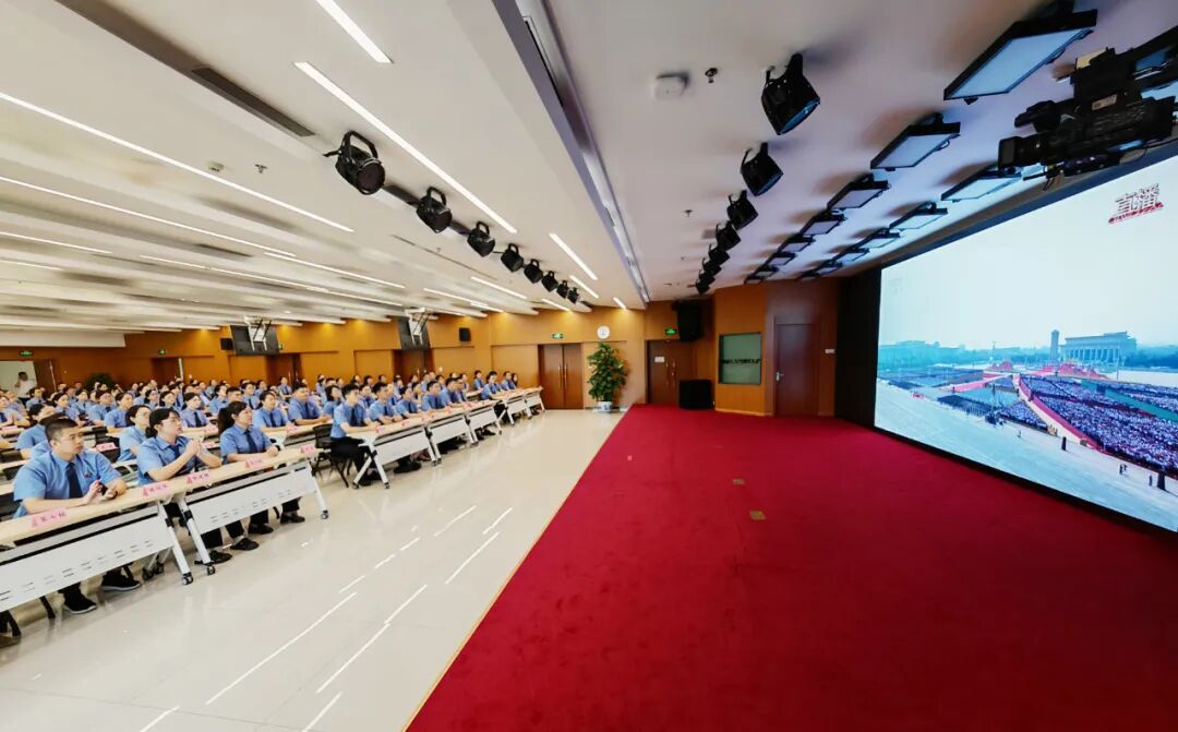 9月3日上午,国家检察官学院的学员集中观看纪念中国人民抗日战争暨世界反法西斯战争胜利80周年大会。